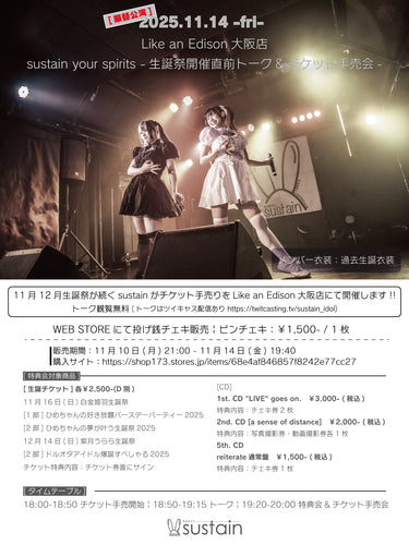 【大阪店】 2025-11-14 sustain『sustain your spirits-生誕祭開催直前トーク&チケット手売会-』 トーク&チケット手売り&特典会