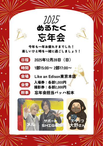 【東京本店】 2025-12-28 Melltaku [1部]お酒を飲みながらトーク&2ショットor3ショット撮影会 [2部]お酒を飲みながらトーク&2ショットor3ショット撮影会