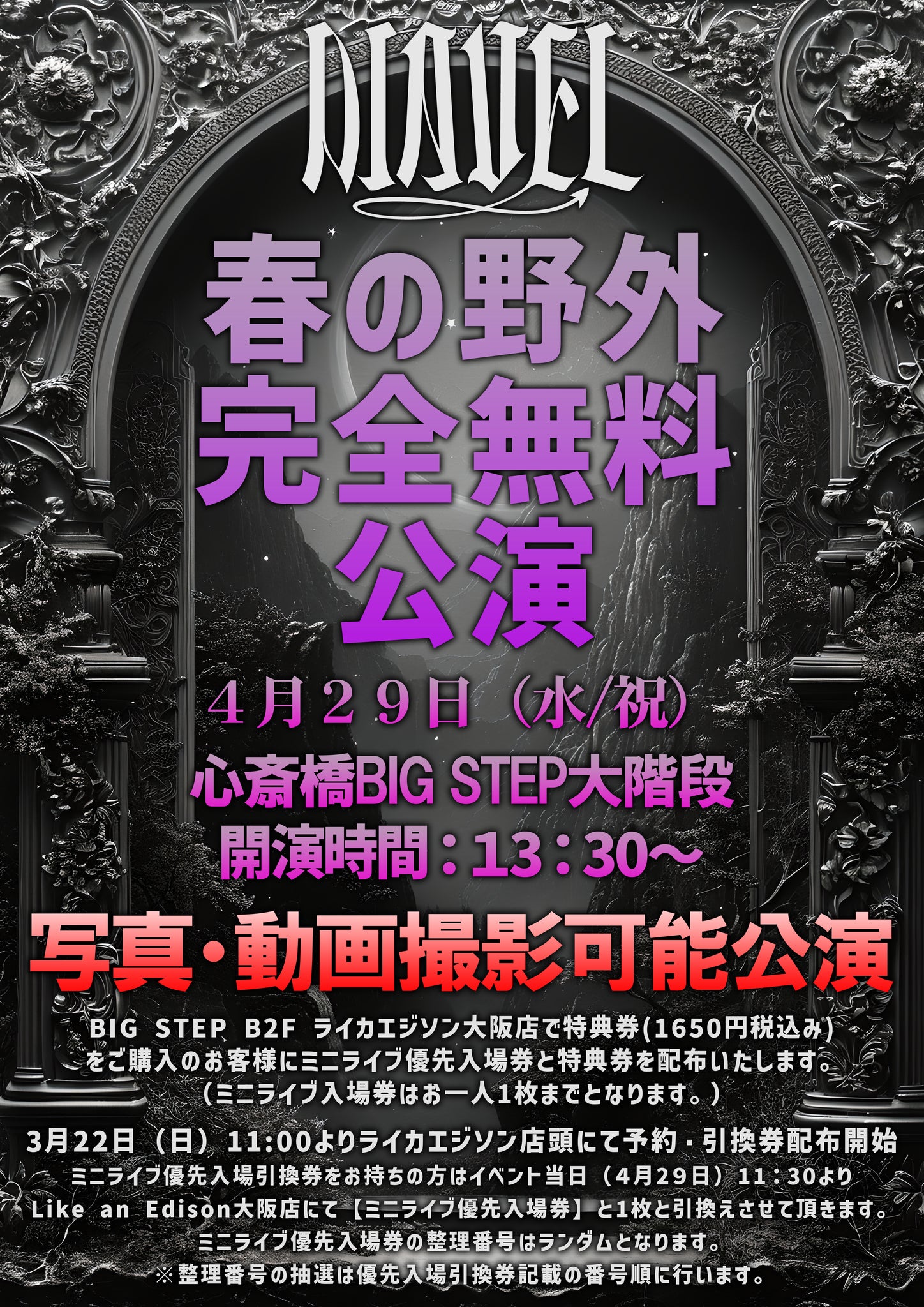 【大阪店】 2026-04-29 DIAVEL 【春の野外完全無料公演】ミニライブ&特典会